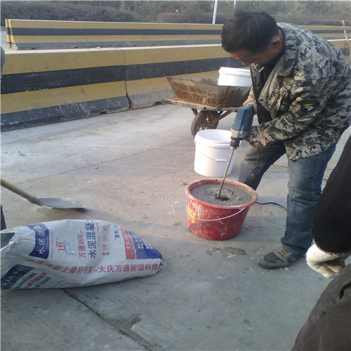 大慶萬通新源科技有限公司獨有的混凝土路面高強速補料,是水泥混凝土路面病害修復的好材料。疲勞、凍融循環(huán)、彎曲壓力、滲水和基層破壞等原因都會引起水泥路面的破損,從而帶來高昂的維護費用。與以往的剛性修補方法不同,混凝土水泥路面維修速補膠提供了一種獨特的柔性修補產品和技術,高柔性、高抗拉性,可跨伸縮縫施工和高抗壓性使得混凝土快補產品為水泥混凝土路面提供了******性的修補。傳統(tǒng)的剛性修補方案,如環(huán)氧砂漿和快干水泥產品,由于其自身的粘結失效,抗疲勞性低以及與原路面不同的伸縮系數(shù),修補面會在短時間內失效或產生新的裂縫,需要反復修補,有效期短且費用高昂。大慶萬通新源科技有限公司的混凝土水泥路面維修速補膠可以隨原路面一起伸縮,移動,從而避免了粘結失效和產生新裂縫。萬通快補產品優(yōu)異的粘結性、柔韌性和高防滑性,特別適用于水泥路面的淺層粘合修補,多邊角混凝土板層修補,跨伸縮縫修補以及路面沉陷修補。萬通混凝土病害修補料針對混凝土起皮起沙、斷板裂縫、蜂窩麻面、坑槽露石子、漏筋掉皮、橋梁的掉皮漏筋快速通車使用時間長。應用萬通快補產品,施工后一天就可以恢復交通。大慶萬通新源科技有限公司的萬通水泥路面維修速補膠適用于高速公路、機場路面、農村村村通路面、廠坪、學校操場、市區(qū)公路、小區(qū)路面、橋梁、水泥路面的修補。使用萬通特快補材料修補路面可以一勞永逸! 水泥地面起砂怎么辦,混凝土修補劑混凝土地面起砂,混凝土地面修補,地面起砂怎么辦,